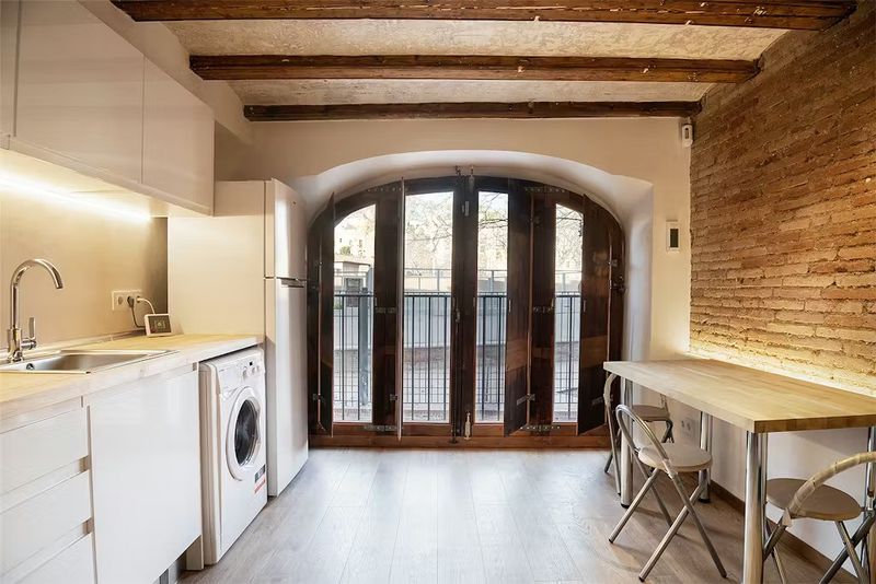 Welcome to your new urban retreat at Carrer Nou de la Rambla, Barcelona, Catalonia 08001! This modern 1-bedroom apartment offers a stylish and cozy living space. The open-concept layout is perfect for entertaining, and the sleek kitchen is equipped with top-of-the-line appliances. With its prime location, you'll be just steps away from the city's best restaurants, shops, and entertainment venues. Priced affordably at € 1,010, this apartment is a fantastic opportunity to enjoy city living at its finest. Don't miss out – schedule a viewing today!